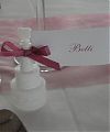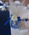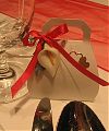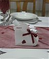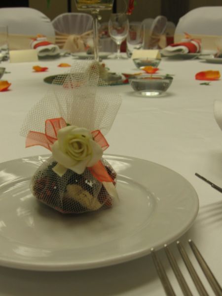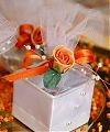 A köszönetajándékot kombinálhatjuk az ültetőkártyával vagy a dekoráció más elemeivel is. Ebben az esetben a kis ajándékok már megérkezéskor is a terített asztalon várják a vendégeket. De a köszönetajándékokat egy mutatós kosárból szétosztva néhány kedves szó kíséretében személyesen is átadhatja az ifjú pár a vendégeknek az este folyamán.